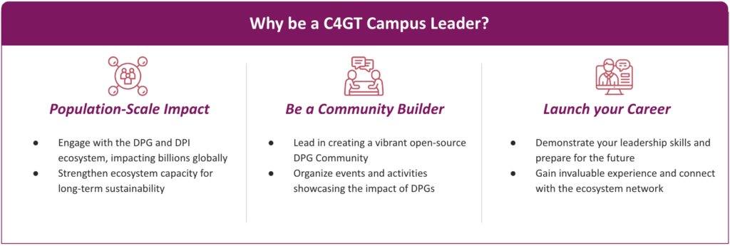 If you’re excited to make an impact and shape the future of open-source Digital Public Goods, apply now to become a C4GT Campus Leader! Dive in and start contributing to a world full of opportunities.